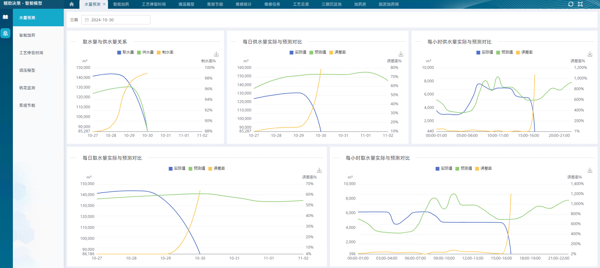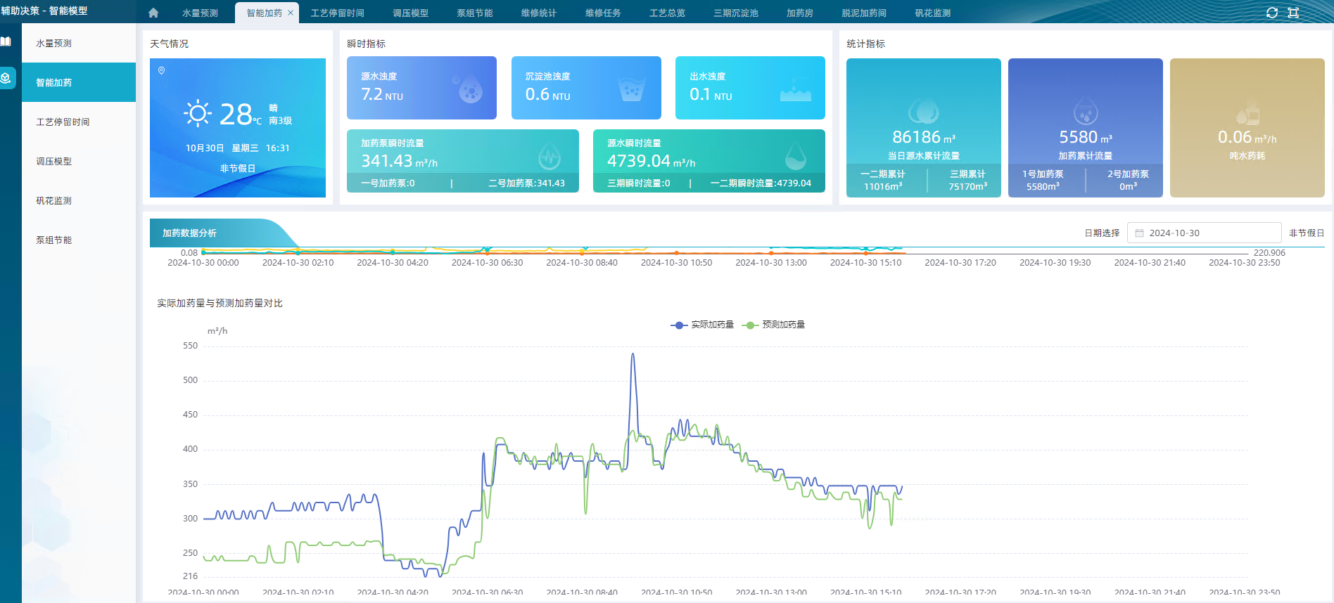 以多維度統(tǒng)計(jì)圖表的方式展現(xiàn)績(jī)效結(jié)果,識(shí)別凈水廠運(yùn)行管理薄弱環(huán)節(jié),為水廠運(yùn)行管理優(yōu)化提供豐富的數(shù)據(jù)展示企業(yè)門戶和決策支持,使得管理者的決策更加綜合、合理、可行,形成智能化、科學(xué)化決策,為全廠可視化、精細(xì)化、智慧化運(yùn)營(yíng)提供數(shù)據(jù)依據(jù)和強(qiáng)有力的支撐。